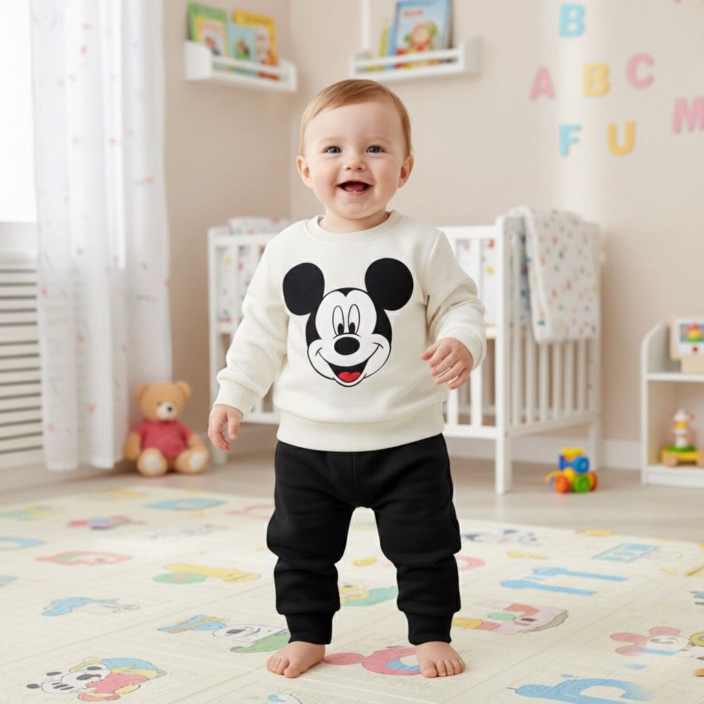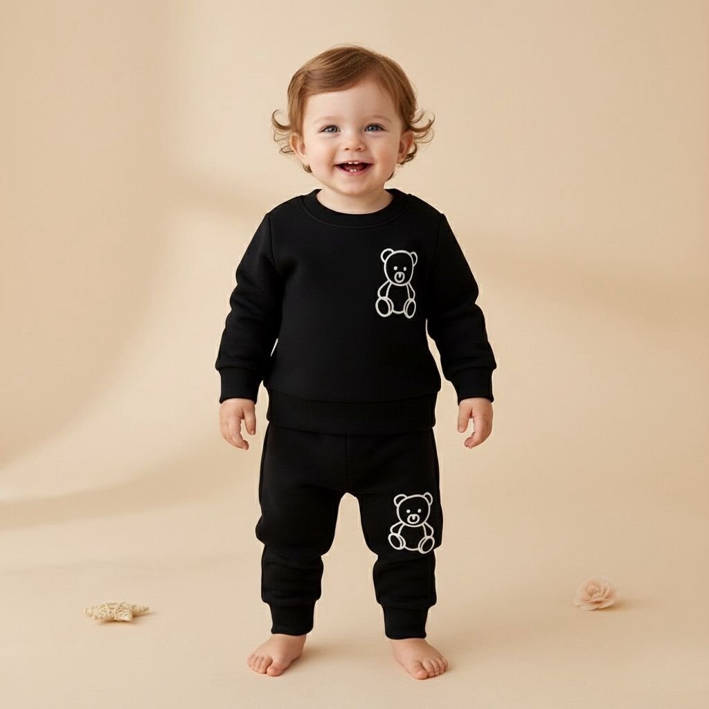 امنح طفلك دفئاً لا مثيل له مع ترنج “غيمة الدفء” الشتوي. طقم مكون من قطعتين (كنزة حمراء وبنطال أسود) مصنوع من خامة الملتون المبطّن بالصوف الناعم (الفليس)، مما يضمن تدفئة ممتازة خلال الأجواء الباردة. تتميز الكنزة بتطريز غيمة مبتسمة ولطيفة. تصميم أنيق ومريح يوفر مرونة كاملة للحركة.