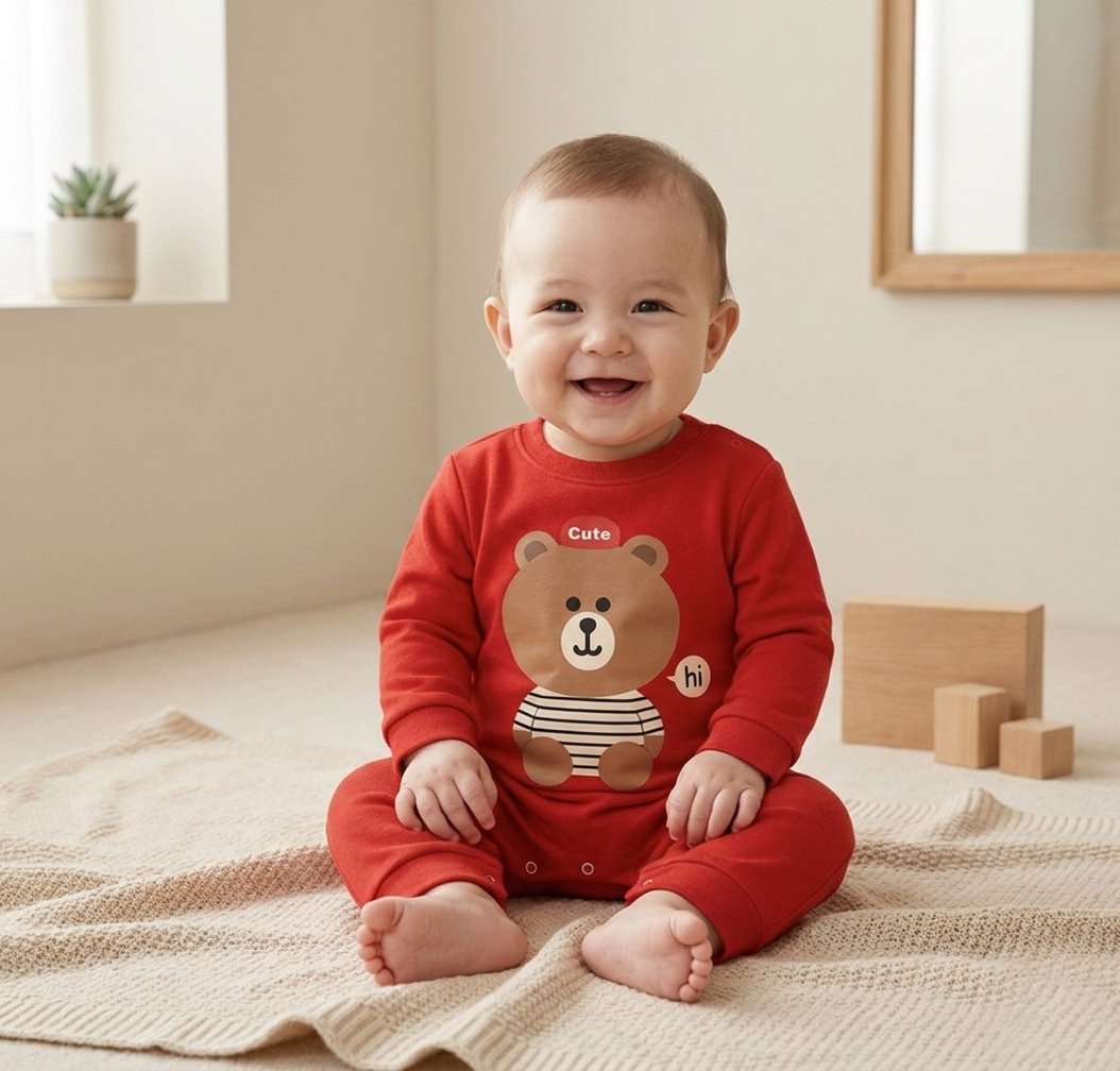 يتميز بطباعة دبدوب لطيفة تضيف شكل جذاب، مع خامة لطيفة على بشرة الطفل وتسمح بحرية الحركة. مناسب للاستخدام اليومي.