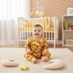• قطن صيفي خفيف وناعم: صُنع الطقم بالكامل من قطن طبيعي فائق النعومة وخفيف الوزن، مما يضمن تهوية ممتازة ويحافظ على برودة وجفاف بشرة طفلك طوال اليوم.