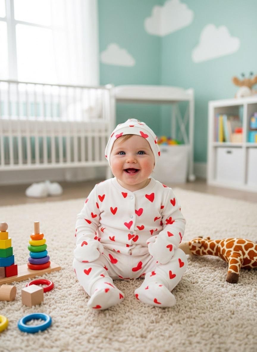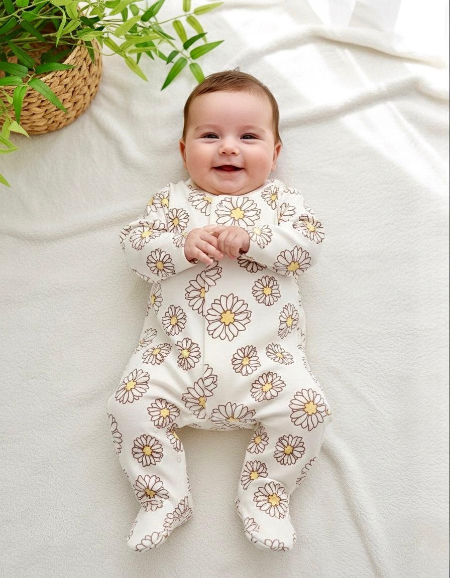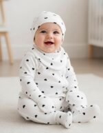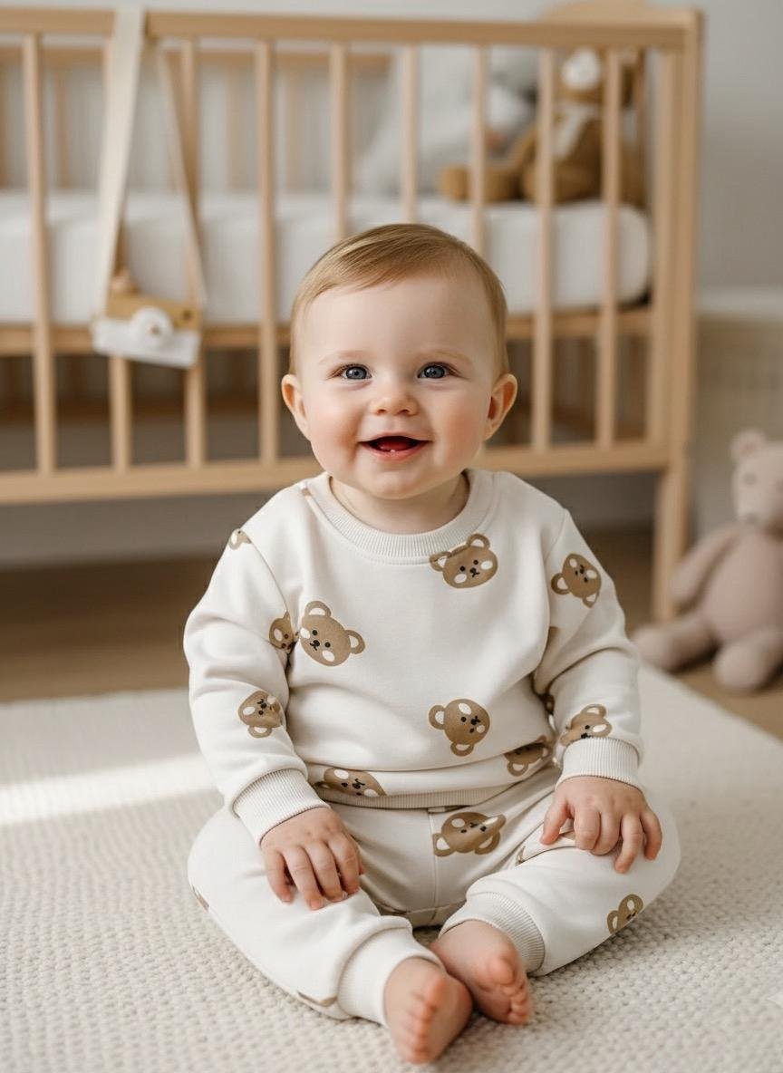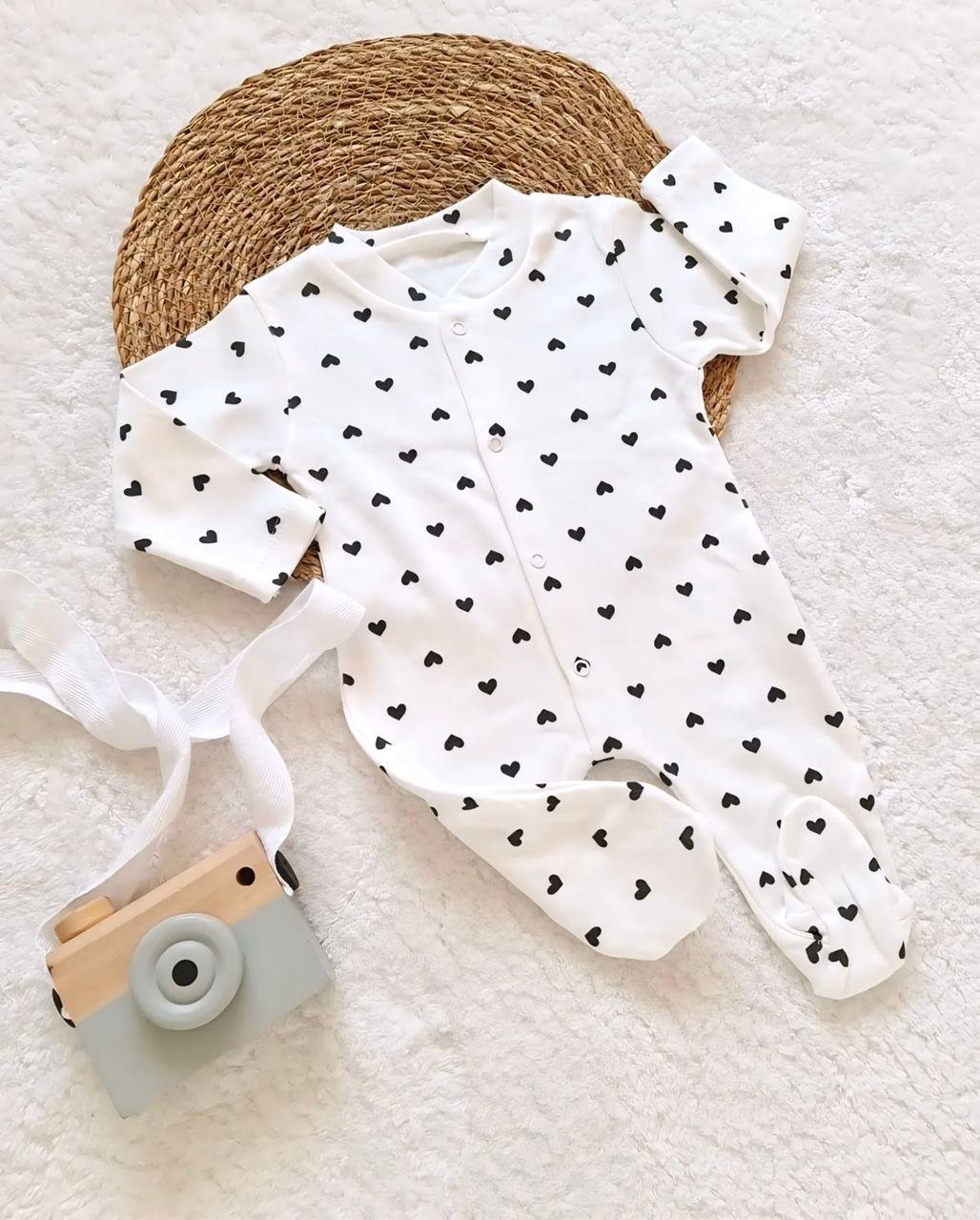 الطقم مصنوع من قطن ناعم عالي الجوده، آمن تمامًا على بشرة البيبي، ويضم ٥ قطع أساسية بتوفر كل اللي يحتاجه طفلك في يومه: