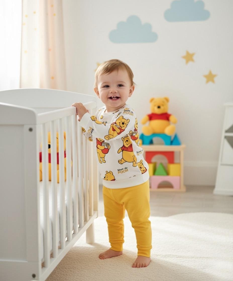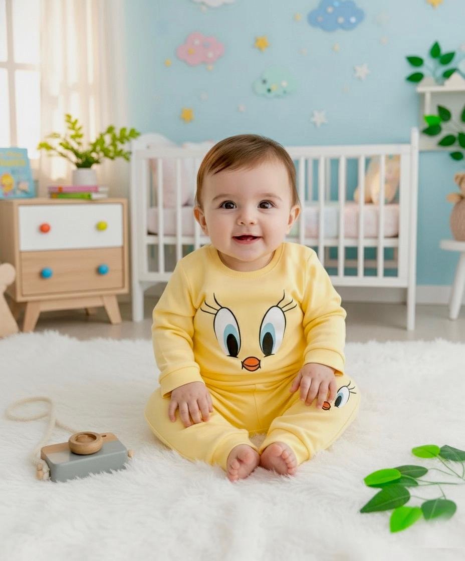 ١-تيشرت بأكمام طويلة: مريح وسهل اللبس، مثالي لراحة البيبي طوال اليوم.